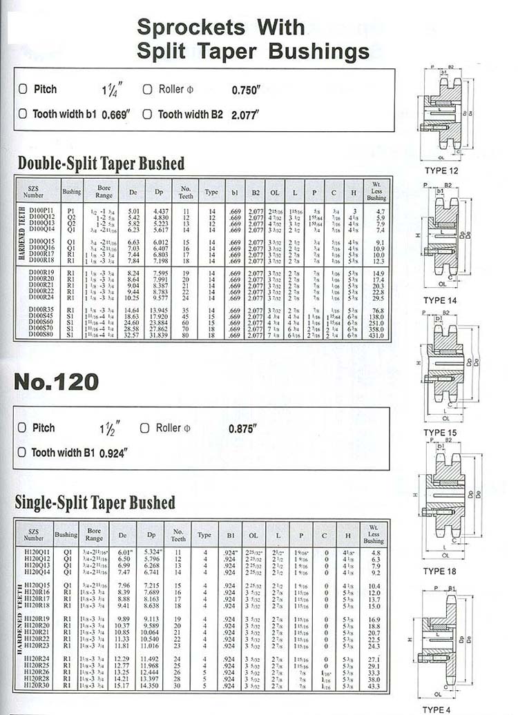 Sprockets With Split Taper Bushings NO.100-2